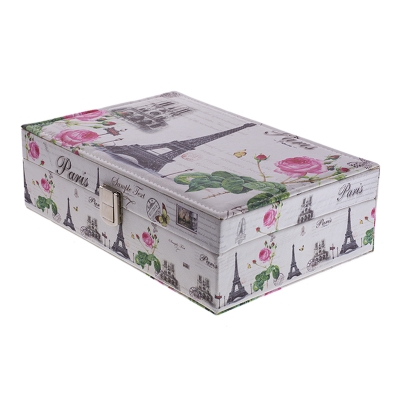 جعبه دارای طرح ایفل می باشد و قسمت داخلی جعبه دارای آینه است.